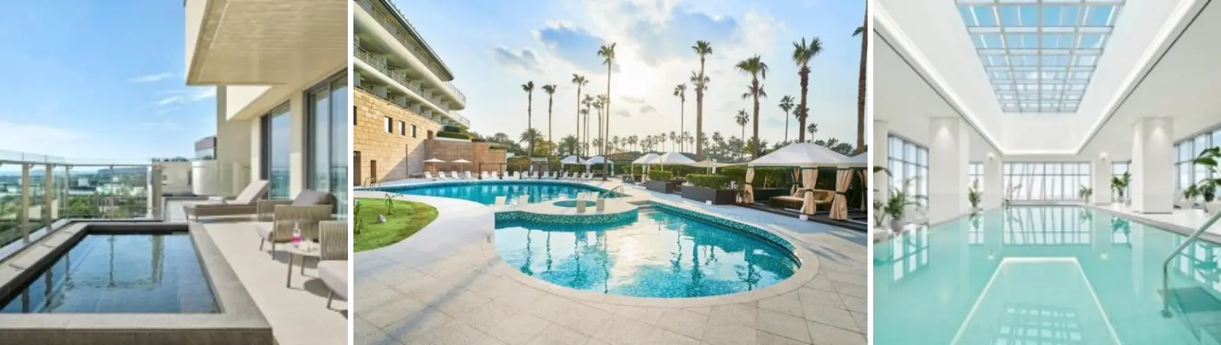 파르나스 호텔 제주는 국내에서 가장 긴 인피니티 풀장이 있는 곳으로 유명합니다. 오션뷰 풀장에 만족하여 재방문하는 여행객도 많을 정도로 파르나스 제주 호텔의 하이라이트는 인피니티 풀장이라고 할 수 있습니다. 그 외에도 넓은 규모의 실내 수영장과 실내 키즈 풀장도 있어 아이와 함께하는 가족 여행 숙박 장소로도 좋습니다.